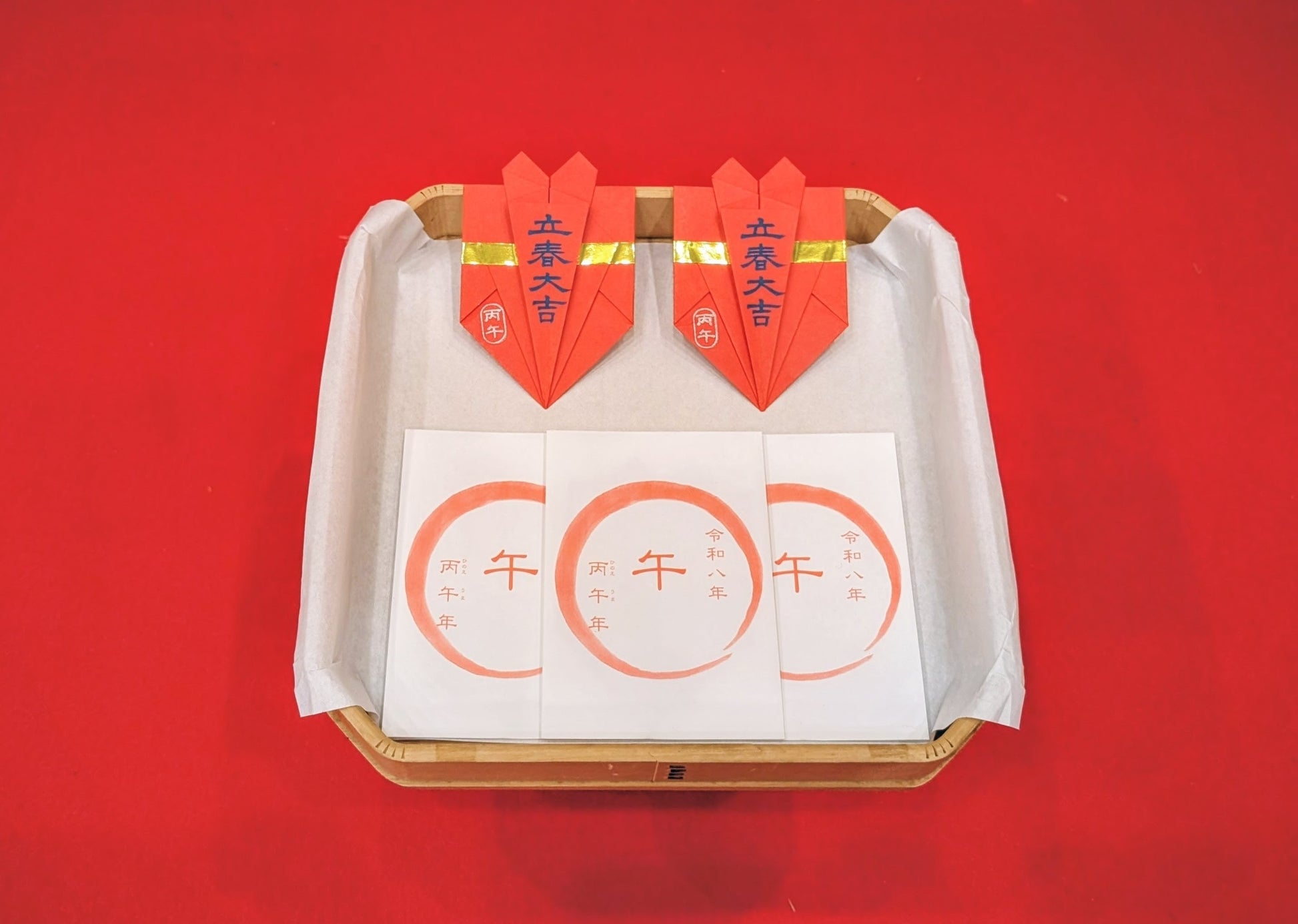 本年は午年のお福分けを頂けるよう、赤色に奉製致しました。